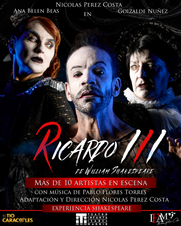 Nuestro maestro en IFAM, Nicolás Pérez Costa, presenta «Ricardo III, Experiencia Shakespeare» en el Teatro Infanta Isabel, junto a las actrices Ana Belén Béas, Goizalde Núñez. Una puesta distópica, anacrónica y visualmente impactante que reinterpreta el clásico de Shakespeare con crudeza, intensidad y una potencia escénica que lo convierte en un espectáculo urgente y necesario.